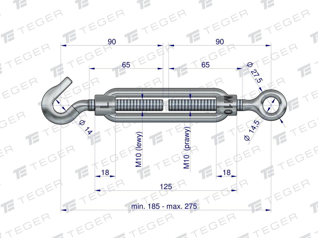 Śruba rzymska oko-hak 10x125 TEGER, (sprzedawane po 5)