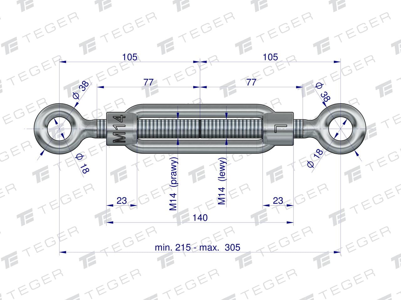Śruba rzymska oko-oko 14x140 TEGER (sprzedawane po 5)