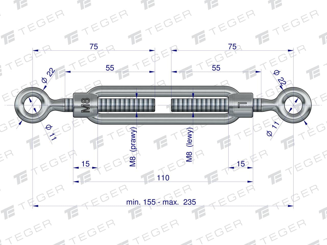 Śruba rzymska oko-oko 8x110 TEGER, (sprzedawane po 10)