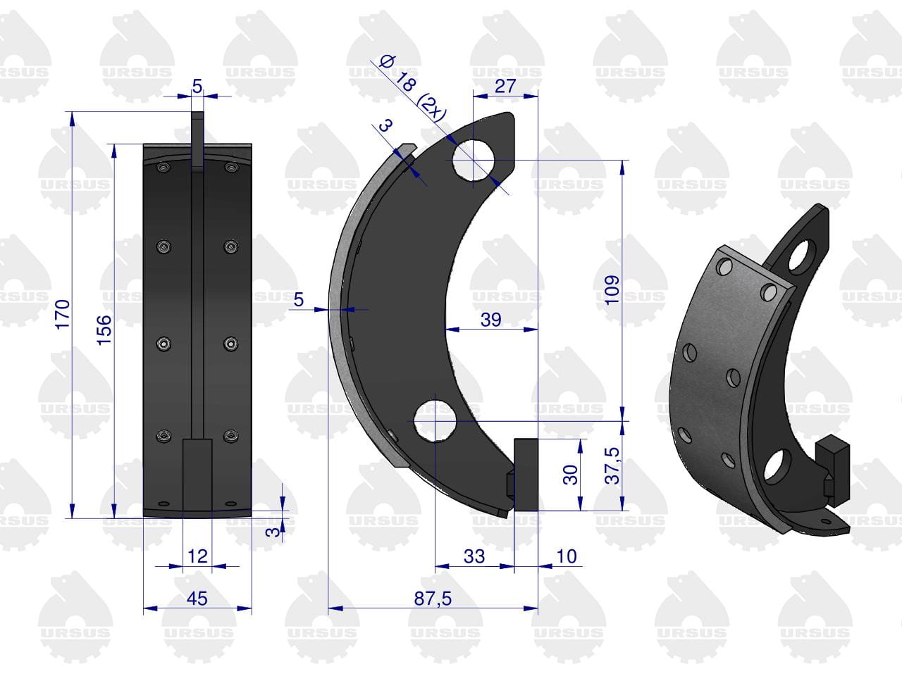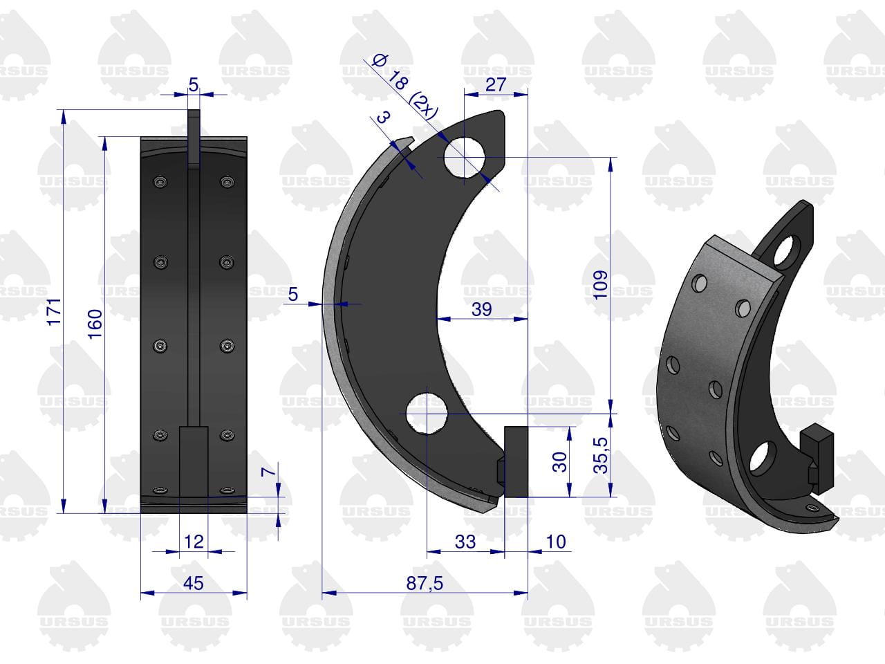 Szczęka hamulcowa kpl (2x przeciwbieżna, 2x współbieżna) C-330 ORYGINAŁ URSUS