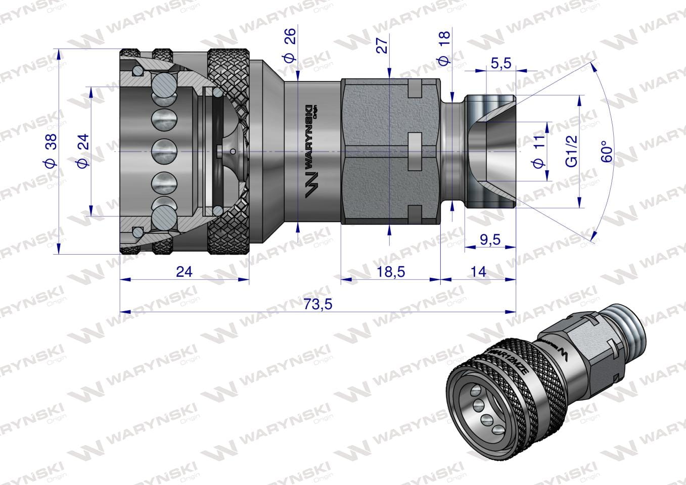 Szybkozłącze hydrauliczne gniazdo G1/2"BSP gwint zewnętrzny EURO ISO 7241-A z eliminatorem ciśnienia Waryński