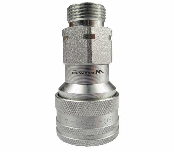 Szybkozłącze hydrauliczne gniazdo M22x1.5 gwint zewnętrzny EURO (9100822G) (ISO 7241-A) Waryński (opakowanie 50szt). Najpopularniejsze szybkozłącza hydrauliczne o bardzo szerokim spektrum zastosowań. Szybkozłącza zaprojektowane są zgodnie z wymogami wymiarowymi i jakościowymi normy ISO 7241 Seria A, która określa szczegółowo charakterystykę i wymiary, aby umożliwić kompatybilność szybkozłączy produkowanych przez różnych producentów zgodnie z tym standardem. Zamienne z szybkozłączami ISO-A innych producentów takich jak: Parker, Faster, Stucchi, DNP, Tema i innych.