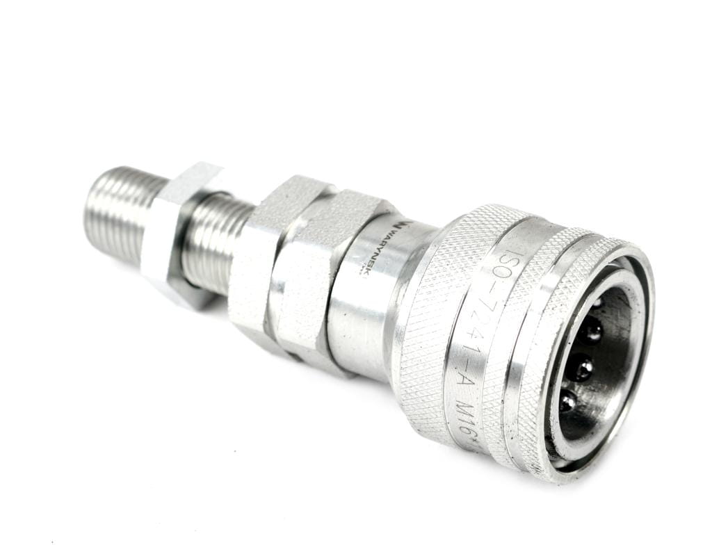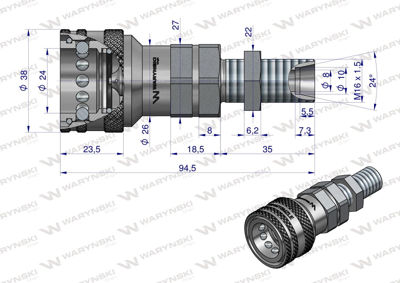 Szybkozłącze hydrauliczne gniazdo long M16x1.5 gwint zewnętrzny EURO (ISO 7241-A) z eliminatorem ciśnienia Waryński