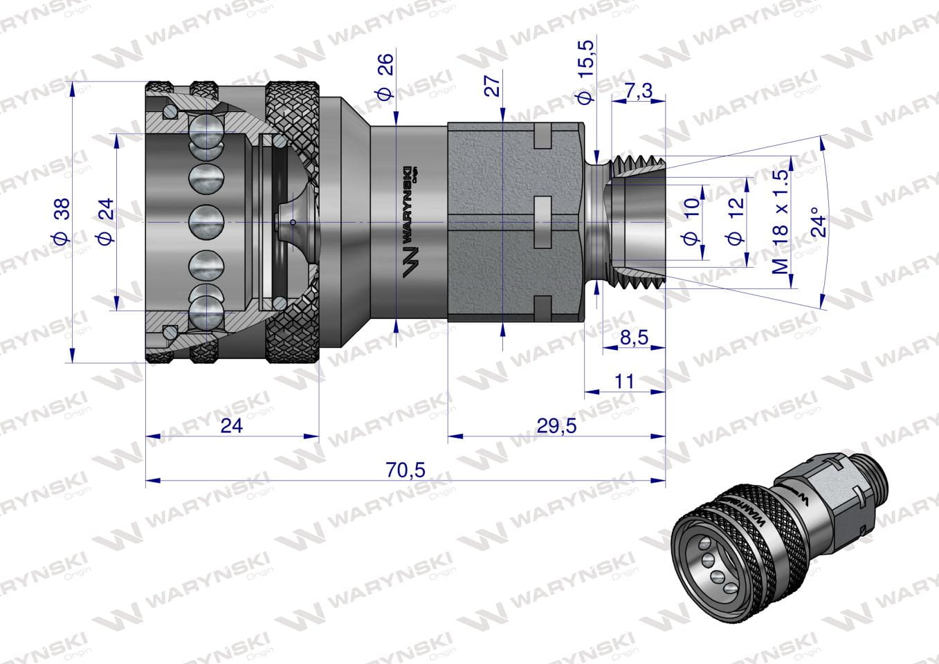 Szybkozlacze hydrauliczne gniazdo z eliminatorem ciśnienia M18x1.5 gwint zewnetrzny EURO (9100818G) (ISO 7241-A) Warynski