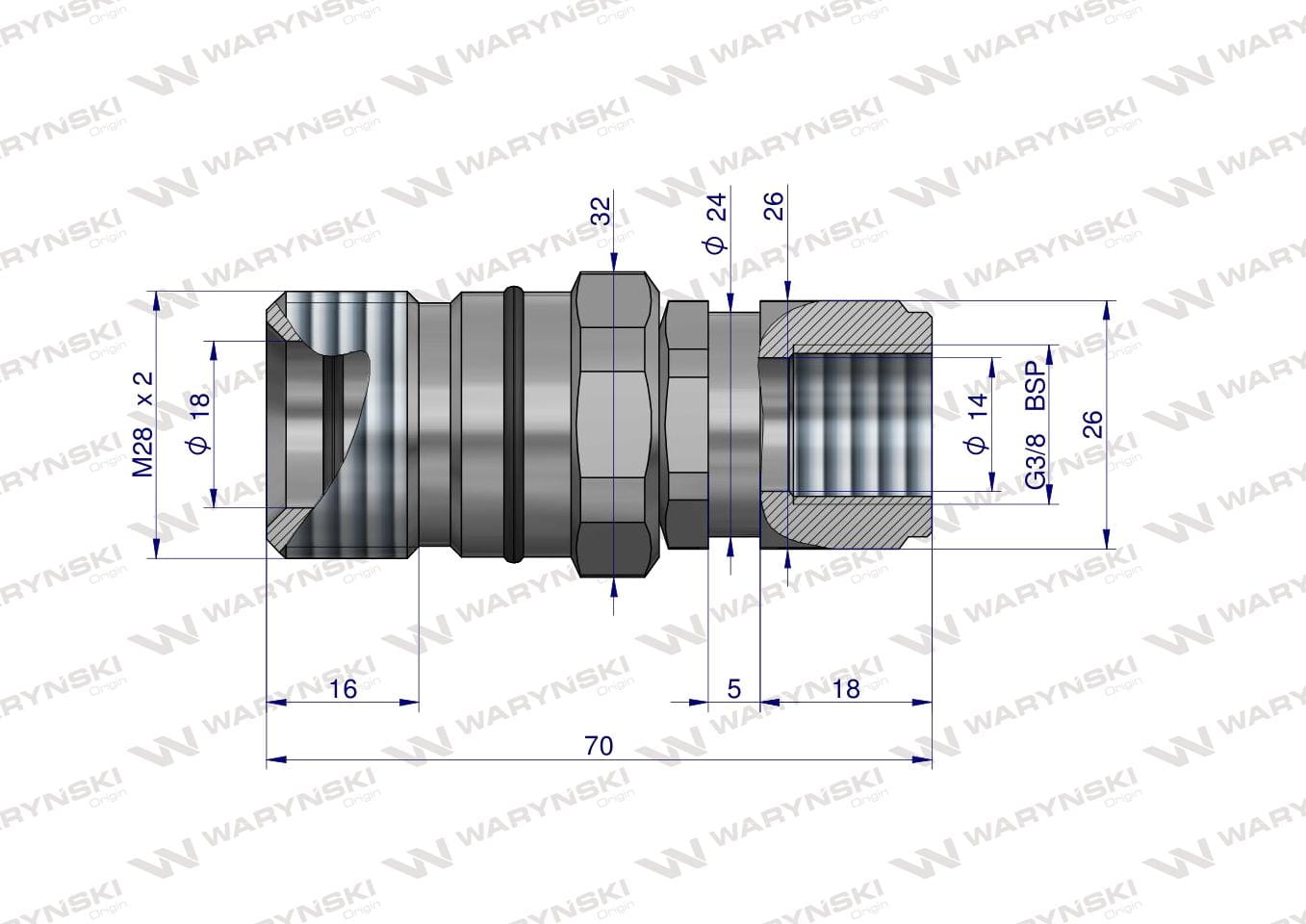 Szybkozłącze hydrauliczne skręcane gniazdo G3/8"BSP gwint wewnętrzny 300bar Waryński