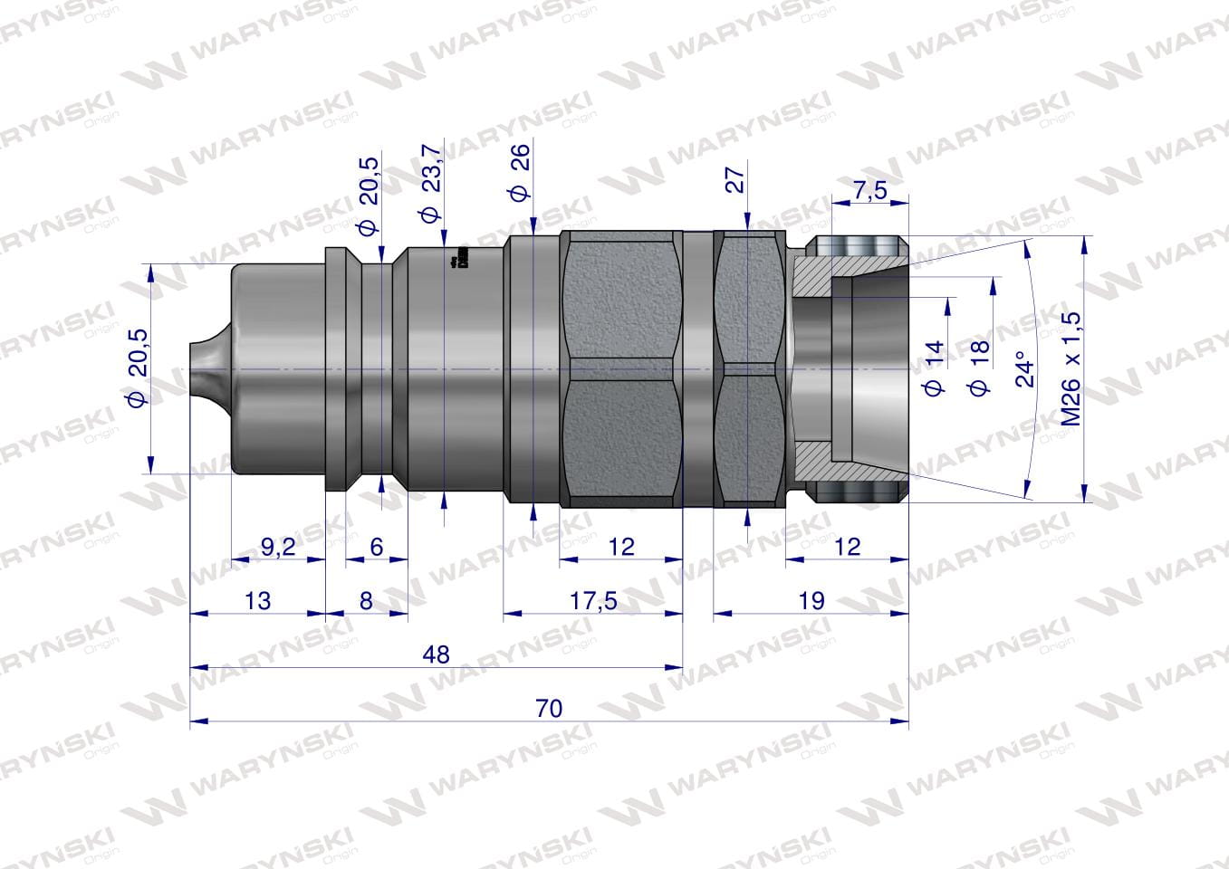 Szybkozłącze hydrauliczne wtyczka ISO 7241-A EURO XGE18LR-1/2" M26x1.5 Waryński
