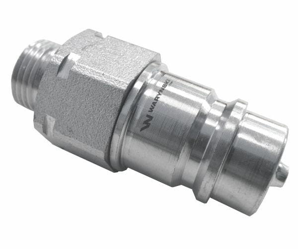 Szybkozłącze hydrauliczne wtyczka M18x1.5 gwint zewnętrzny EURO (9100818W) (ISO 7241-A) Waryński (opakowanie 50szt). Najpopularniejsze szybkozłącza hydrauliczne o bardzo szerokim spektrum zastosowań. Szybkozłącza zaprojektowane są zgodnie z wymogami wymiarowymi i jakościowymi normy ISO 7241 Seria A, która określa szczegółowo charakterystykę i wymiary, aby umożliwić kompatybilność szybkozłączy produkowanych przez różnych producentów zgodnie z tym standardem. Zamienne z szybkozłączami ISO-A innych producentów takich jak: Parker, Faster, Stucchi, DNP, Tema i innych.