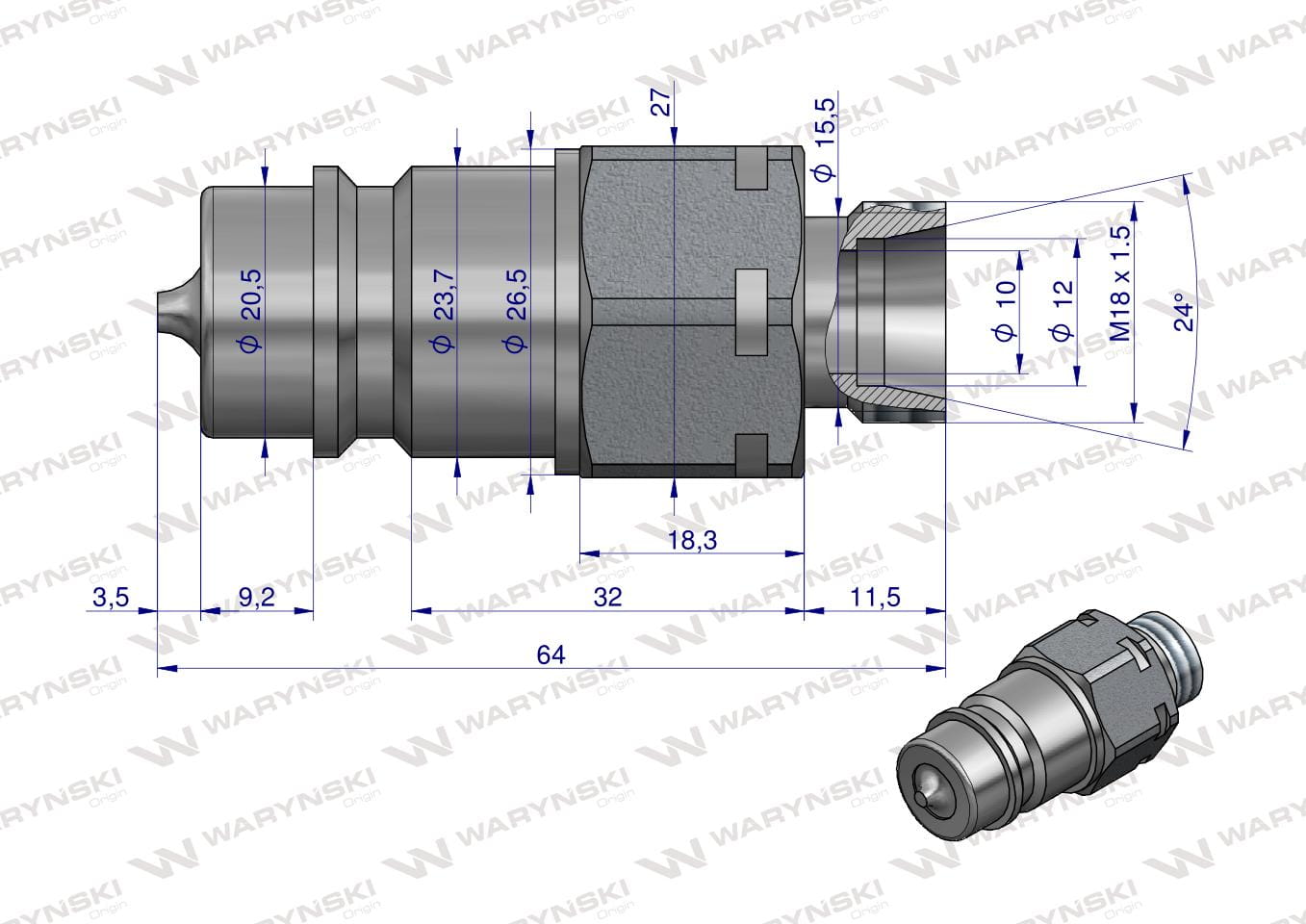 Szybkozłącze hydrauliczne wtyczka M18x1.5 gwint zewnętrzny EURO (9100818W) (ISO 7241-A) Waryński (opakowanie 50szt)