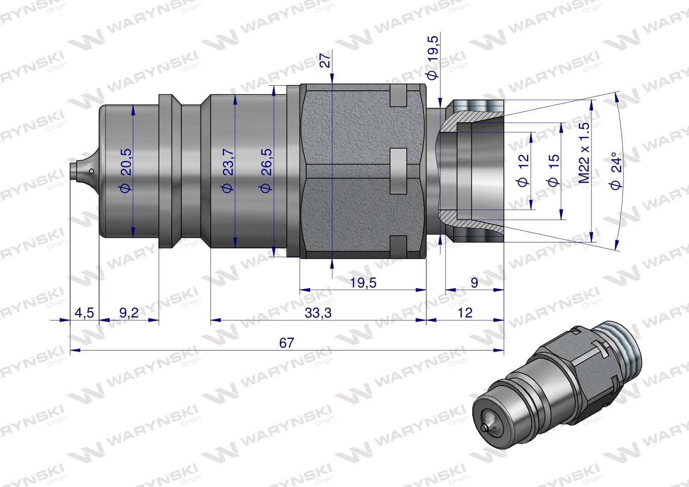 Szybkozłącze hydrauliczne wtyczka z eliminatorem ciśnienia M22x1.5 gwint zew. EURO (9100822W) (ISO 7241-A) Waryński