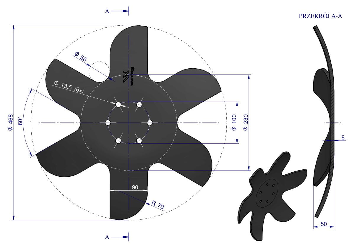 Talerz skrajny lewy Z-6 fi 460 mocowanie 6 / 100mm grubość 8mm zastosowanie Horsch stal borowa Waryński