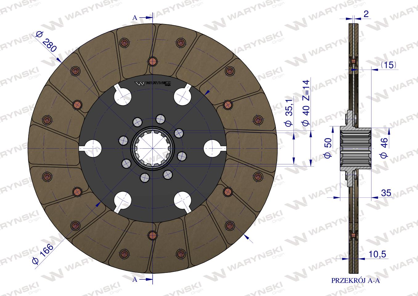 Tarcza sprzęgłowa w marce Waryński to produkt najwyższej jakości. Tarcza Sprzęgłowa jest jednym z najważniejszych elementów układu przeniesienia napędu. Odpowiada za przekazanie momentu obrotowego z koła zamachowego na wałek sprzęgłowy skrzyni biegów. Jednym z zadań tarczy sprzęgła jest również redukcja i tłumienie drgań przenoszonych napędów.