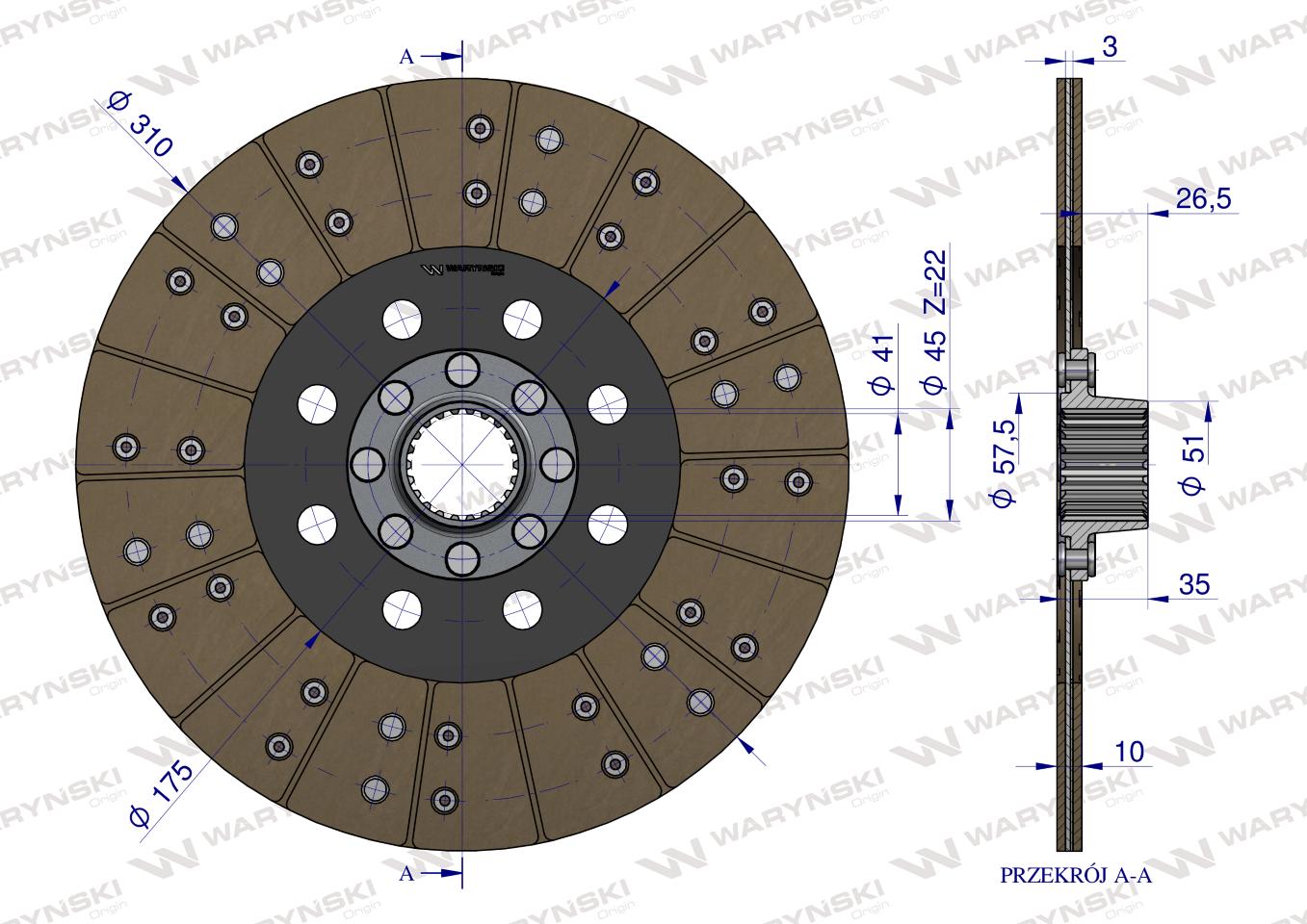 Tarcza sprzęgłowa w marce Waryński to produkt najwyższej jakości. Tarcza Sprzęgłowa jest jednym z najważniejszych elementów układu przeniesienia napędu. Odpowiada za przekazanie momentu obrotowego z koła zamachowego na wałek sprzęgłowy skrzyni biegów. Jednym z zadań tarczy sprzęgła jest również redukcja i tłumienie drgań przenoszonych napędów.