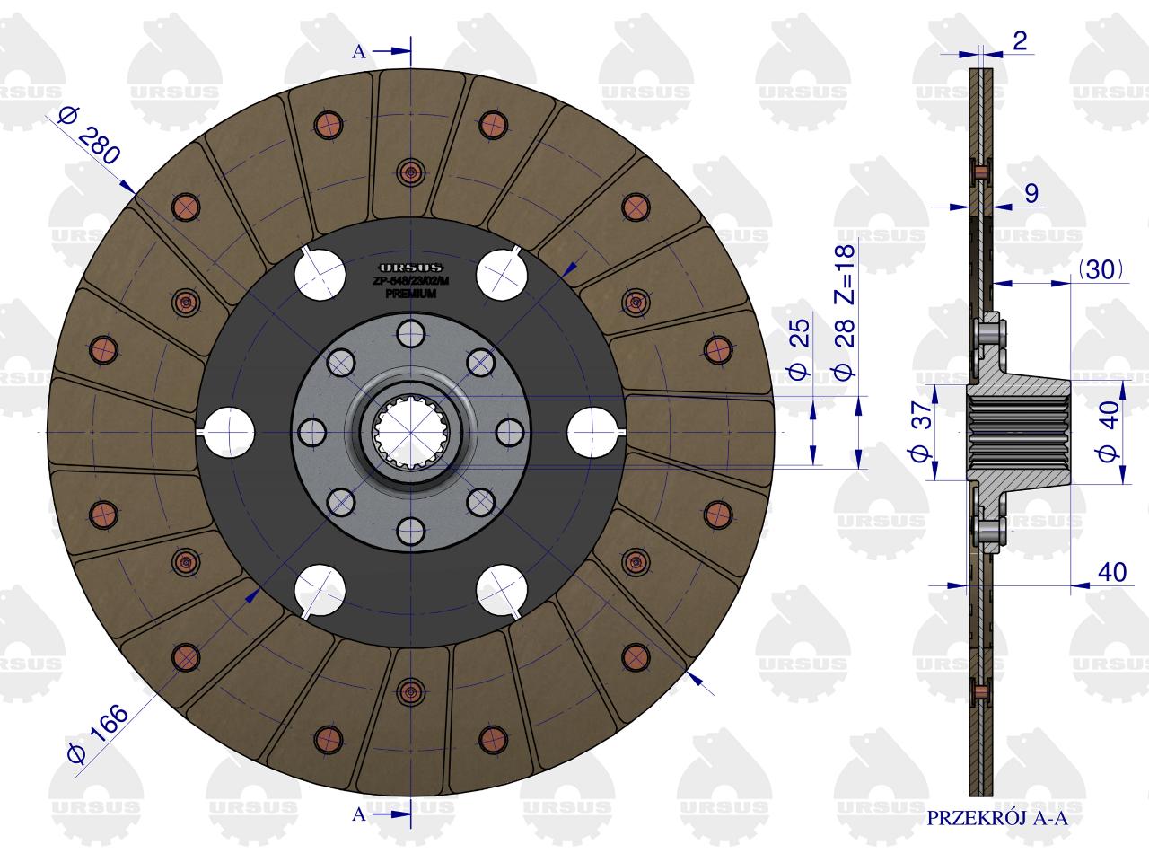 Tarcza sprzęgłowa w marce Ursus to produkt najwyższej jakości. Tarcza Sprzęgłowa jest jednym z najważniejszych elementów układu przeniesienia napędu. Odpowiada za przekazanie momentu obrotowego z koła zamachowego na wałek sprzęgłowy skrzyni biegów. Jednym z zadań tarczy sprzęgła jest również redukcja i tłumienie drgań przenoszonych obciążeń. Tarcza sprzęgłowa premium wyróżnia się dłuższą żywotnością zwiększoną o 30%, posiada zwiększoną liczbę nitów piasty, zostały również zmienione nity okładziny z aluminiowych na miedziane. Okładzina posiada więcej włókien, które wydłużają jej żywotność. Każdy produkt posiada 5 letnią żelazną gwarancję.