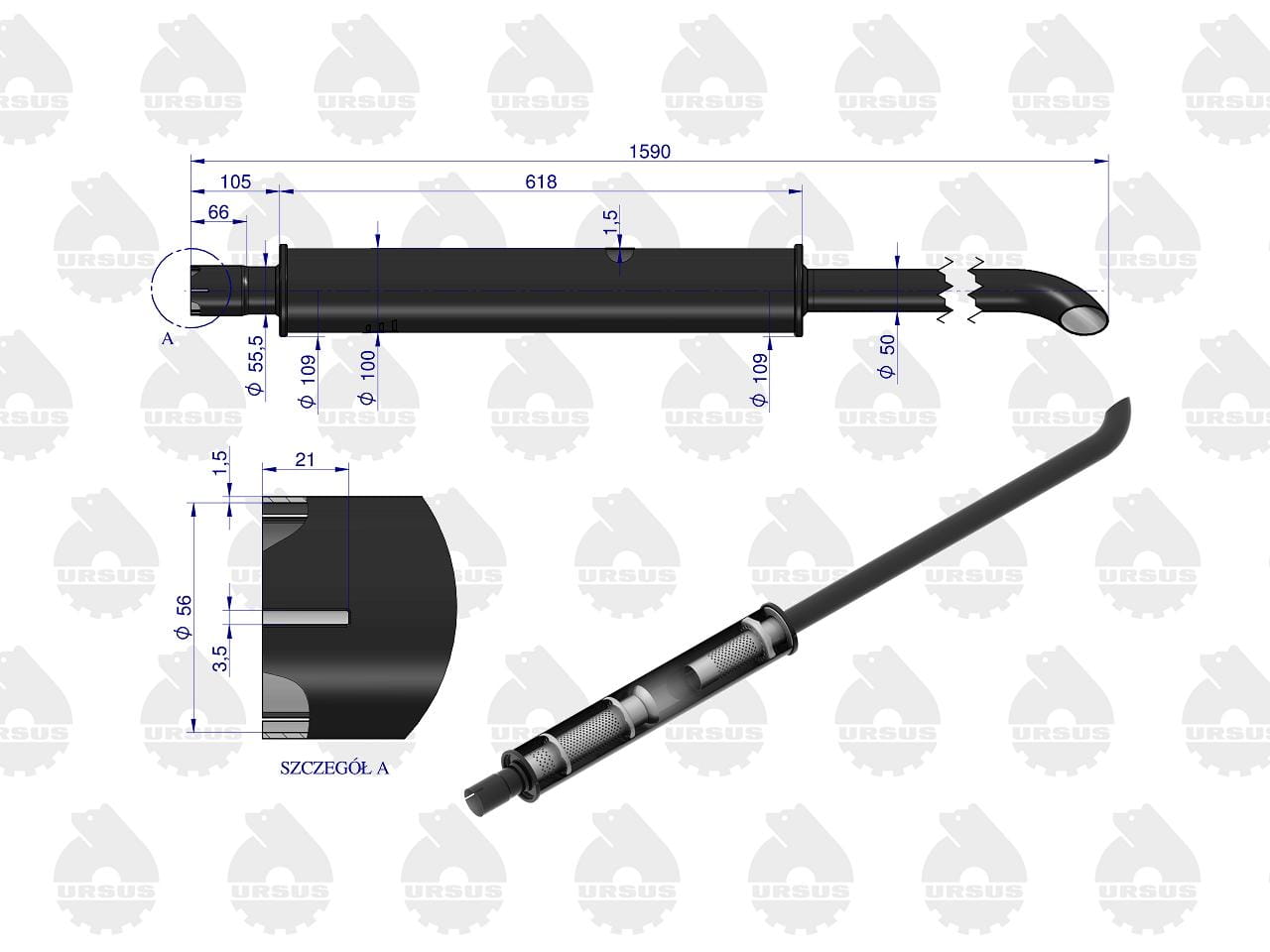 Tłumik 1590mm 6kg MF4 EMALIA ORYGINAŁ URSUS