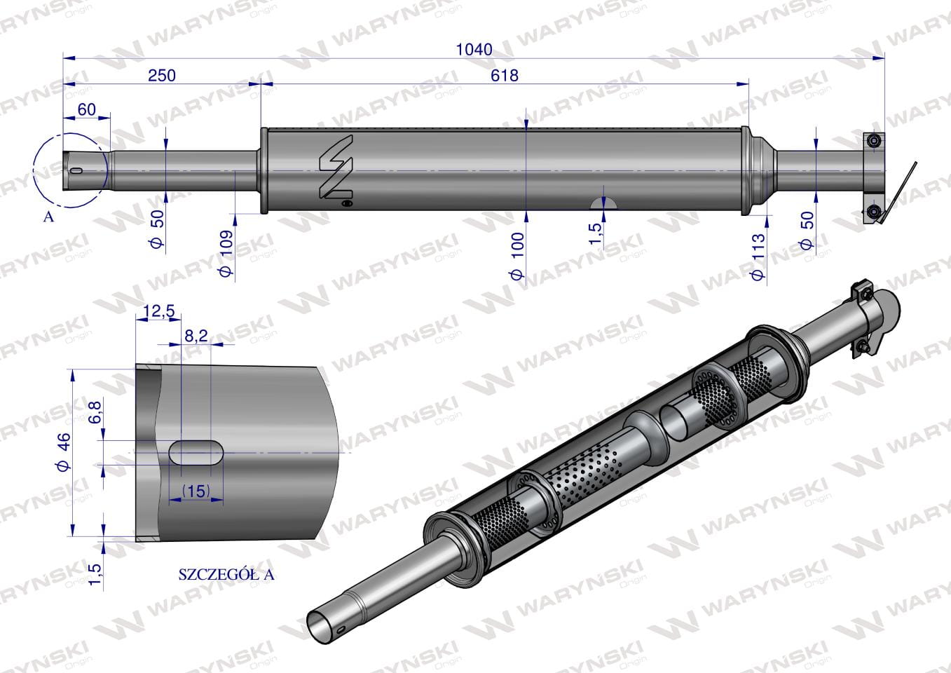 Tłumik okrągły 1040 mm 5kg C-360 (prosty) INOX WARYŃSKI