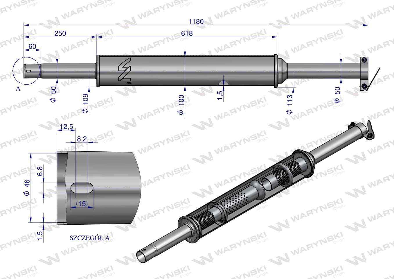 Tłumik okrągły długi 5.5kg 1180mm C-360 (prosty) INOX WARYŃSKI