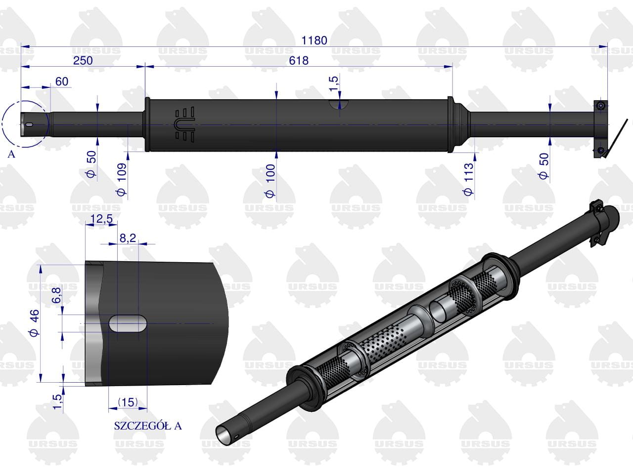 Tłumik okrągły długi 5.5kg 1180mm C-360 (prosty) ORYGINAŁ URSUS