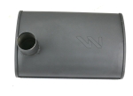 Tłumik Massey Ferguson to element układu wydechowego zabezpieczony farbą na bazie żywicy modyfikowanej silikonem odpornej na temperatury do 900 stopni ,wykonany z blachy aluminiowej DX53 + 120AS ,która odporna jest na korozję .Trwałe widoczne oznakowanie.