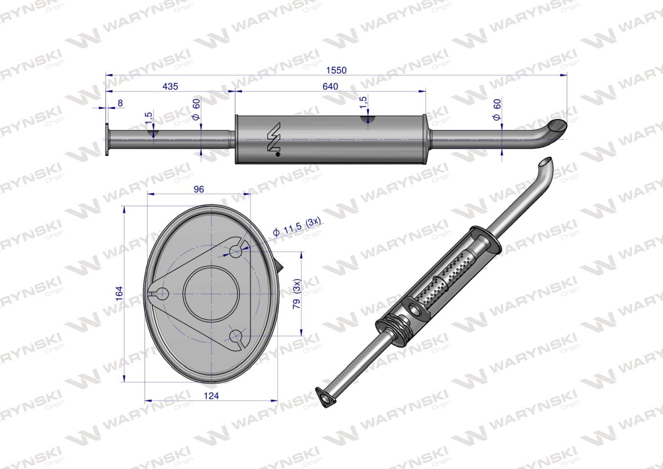 Tłumik prosty długi 1550mm 8kg C-385 INOX WARYŃSKI