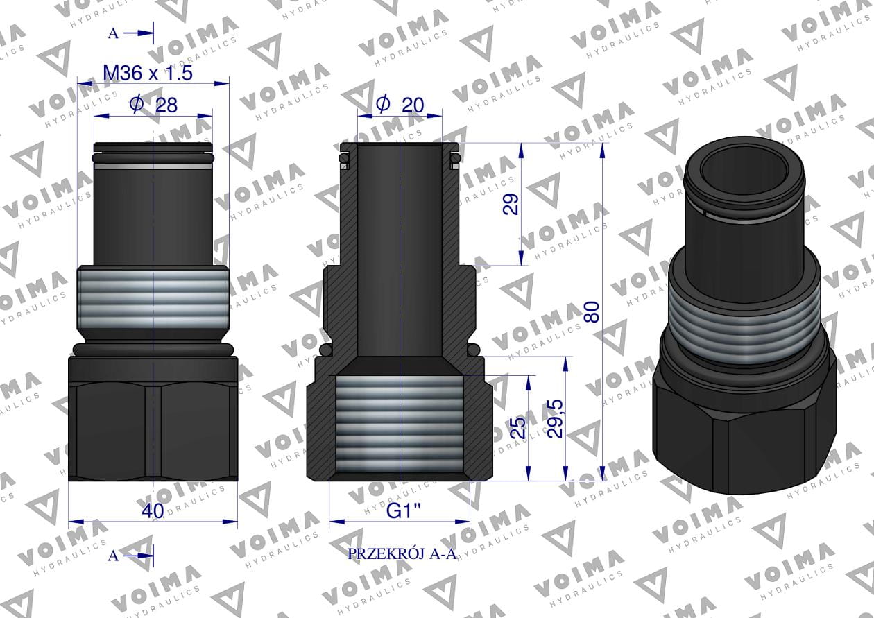 Zastosowanie: Tuleja do łączenia rozdzielaczy hydraulicznych z serii P120 (120l/min) VOIMA