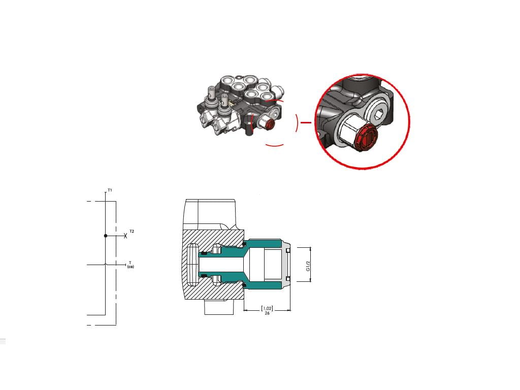 Podczas używania tulei kanał powrotny pierwszego rozdzielacza musi być podłączony na zbiornik.