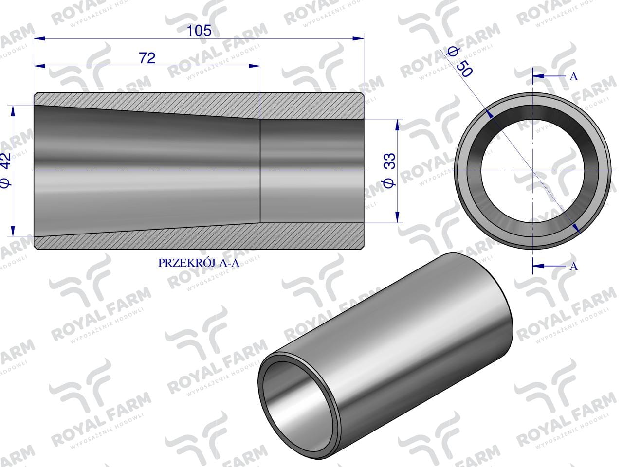 Uniwersalna tuleja zęba ładowacza do zębów ciężkich Tur, Royal Farm to alternatywa dla tulejek Waryński– mają cieńsze ścianki, zapewniają mimo to solidne podparcie dla zębów. Wykonany został ze stali gatunkowej.. Idealnie współpracuje z Zębami Waryński Pamiętaj, aby podczas wymiany zęba wymienić tuleję jeśli jest zużyta