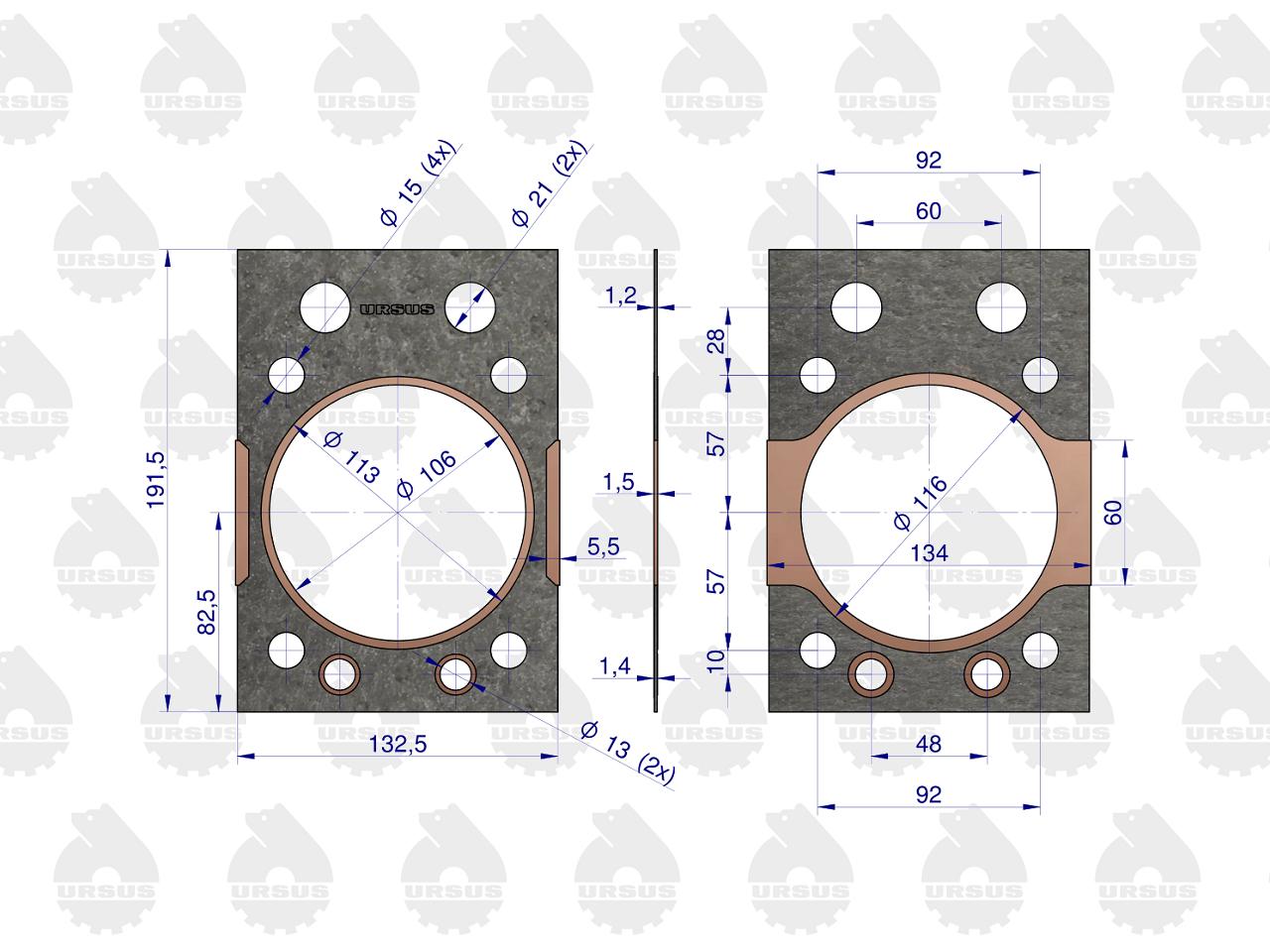 Uszczelkę głowicy w marce Ursus do ciągnika C-360 charakteryzuję dodatkowe miedziane boczne okucie dzięki, któremu przestrzeń między głowicą a kadłubem silnika jest jeszcze lepiej wypełniona i spasowana ,przekłada się to na bezawaryjną pracę wszystkich podzespołów, gwarantujemy najwyższą jakość produktu.
