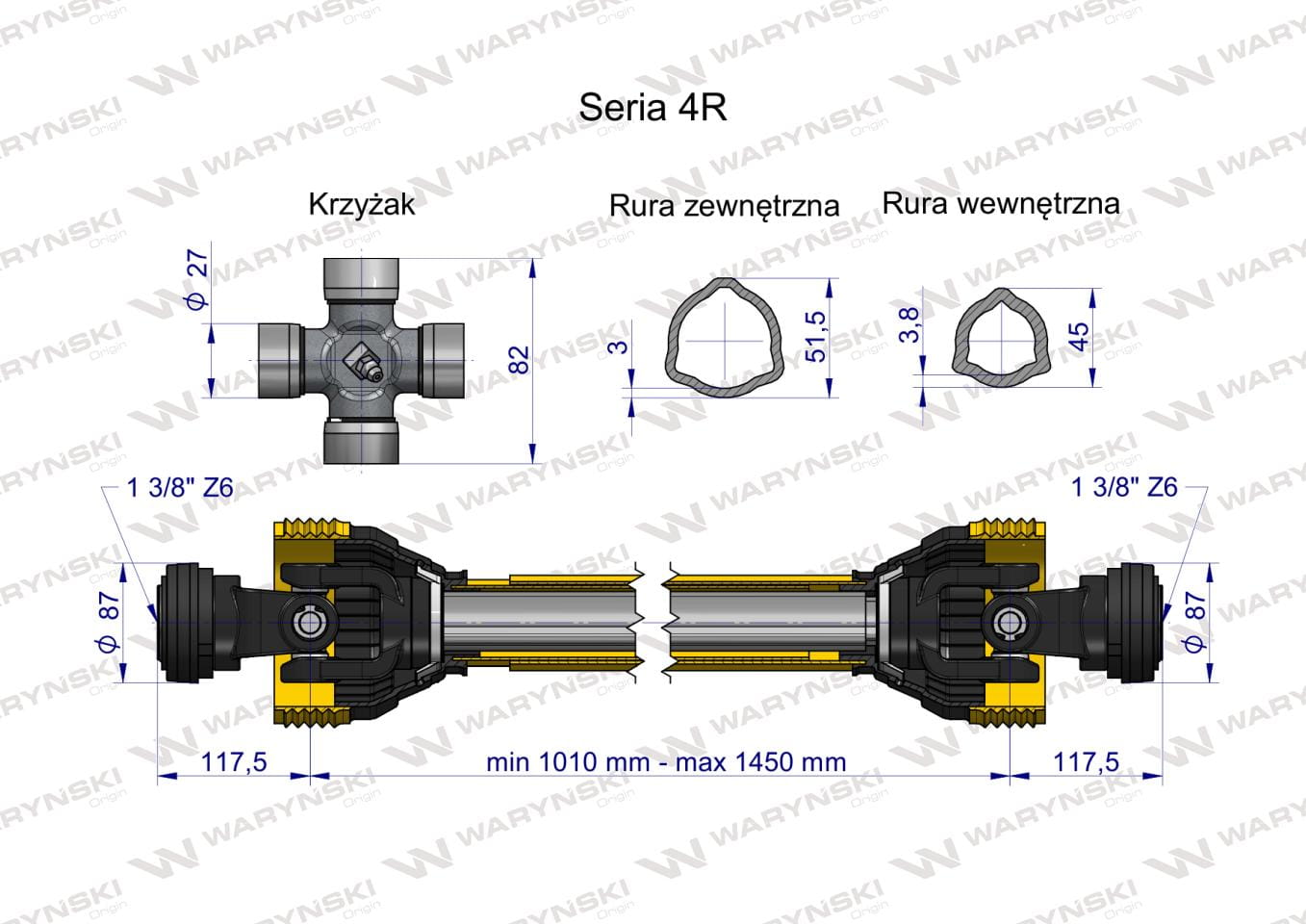 Wał przegubowo-teleskopowy 1010-1450mm 540Nm CE 2020 seria 4R Waryński