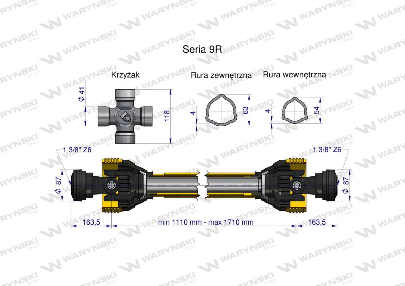 Wał przegubowo-teleskopowy 1110-1710mm 1890Nm CE 2020 seria 9R Waryński
