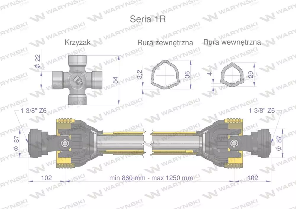 Wał przegubowo-teleskopowy 860-1250mm 210Nm 10250 CE 2020 seria 1R WARYŃSKI WA21-81