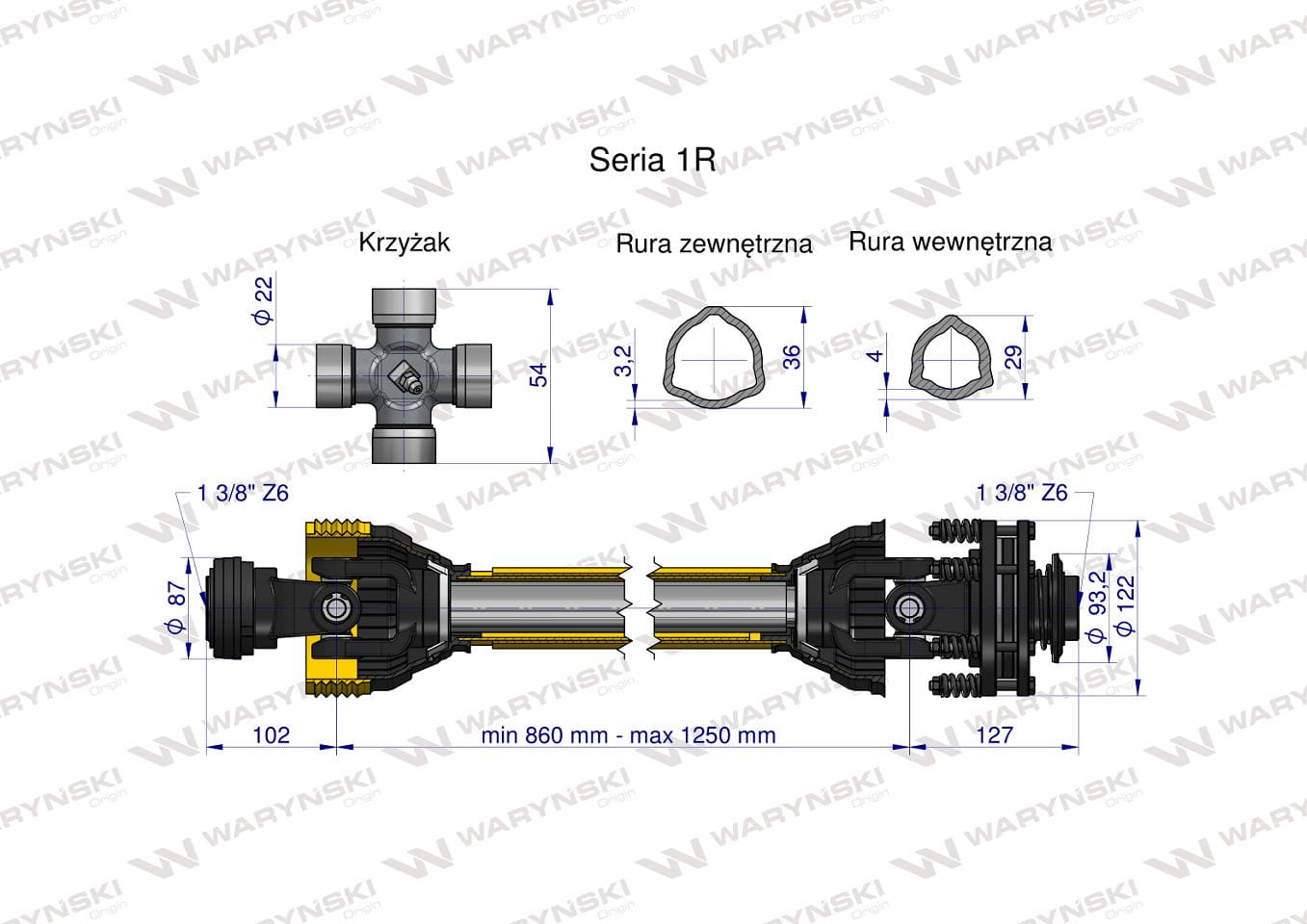 Wał przegubowo-teleskopowy 860-1250mm 210Nm sprzęgło cierne 300Nm CE 2020 2020 seria 1R WARYŃSKI