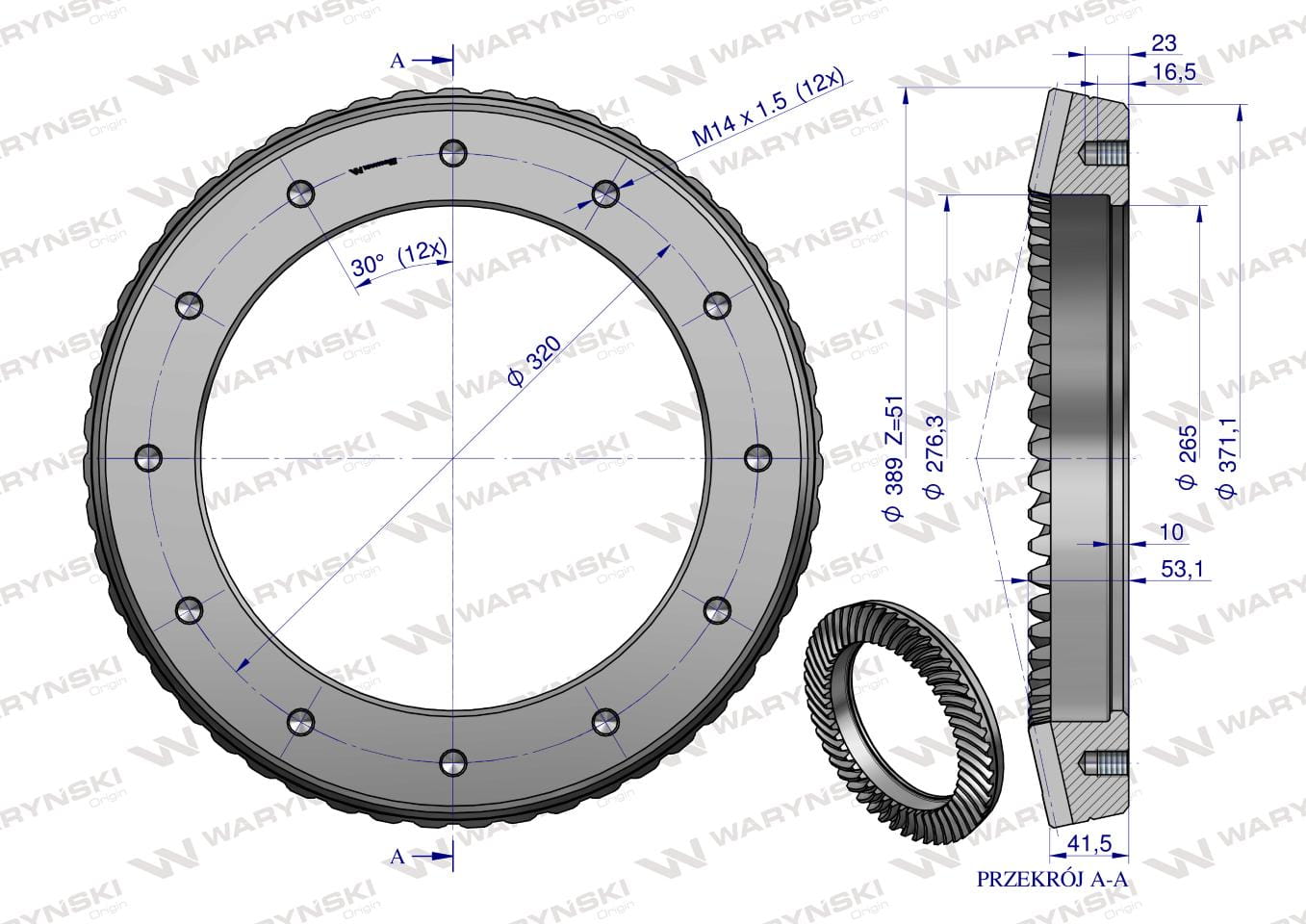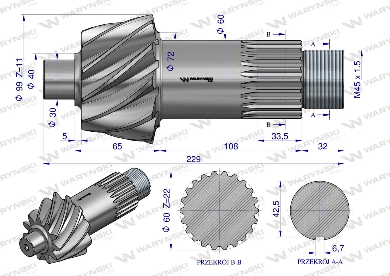 Wałek atakujący z kołem - przekładnia przedniego mostu Ursus C-385 WARYŃSKI