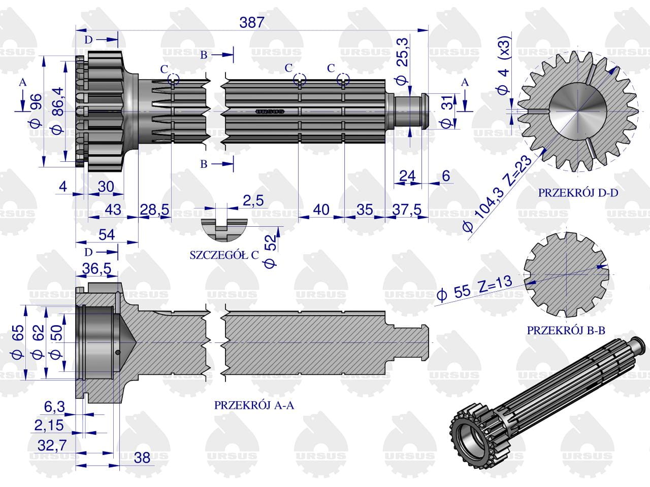Wałek główny (nowy typ - z grzybkiem) C-360 ORYGINAŁ URSUS