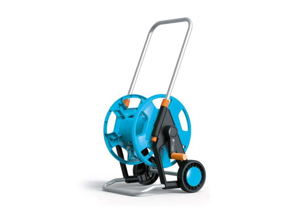Wózek na wąż ogrodowy TEGER to wysokiej jakości stabilny i wytrzymały wózek teleskopowy na wąż ogrodowy. Pozwala na przechowywanie węża nawet do 60 m długości. Przechowywanie wózka ułatwia rączka z regulacją wysokości a specjalny kształt podpórki gwarantuje doskonałą stabilizację. Kątowe połączenie węża zapobiega owijaniu się, załamywaniu lub skręcaniu podczas nawijania lub zwijania. Wózek wyposażony został również w kółka co ułatwia transport węża w wybrane miejsce.