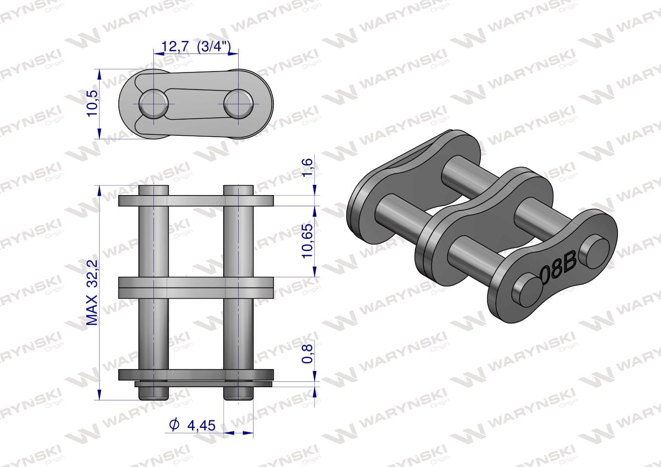 Zamek łańcucha 08B-2 (R2 1/2) Waryński