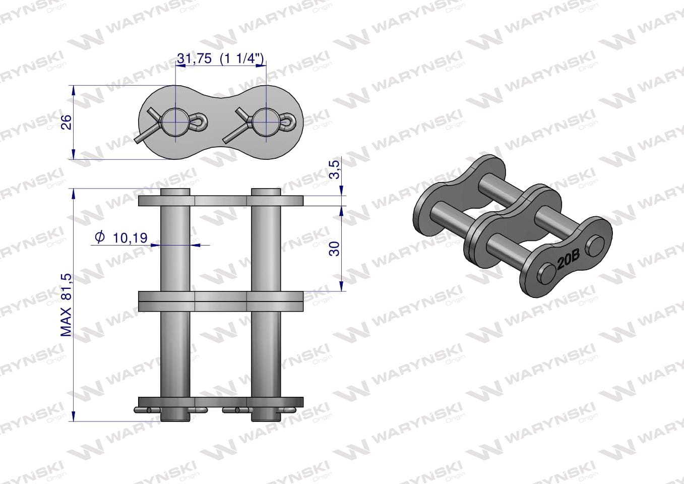 Zamek łańcucha 20B-2 (R2 1.1/4) Waryński ( sprzedawane po 5 )