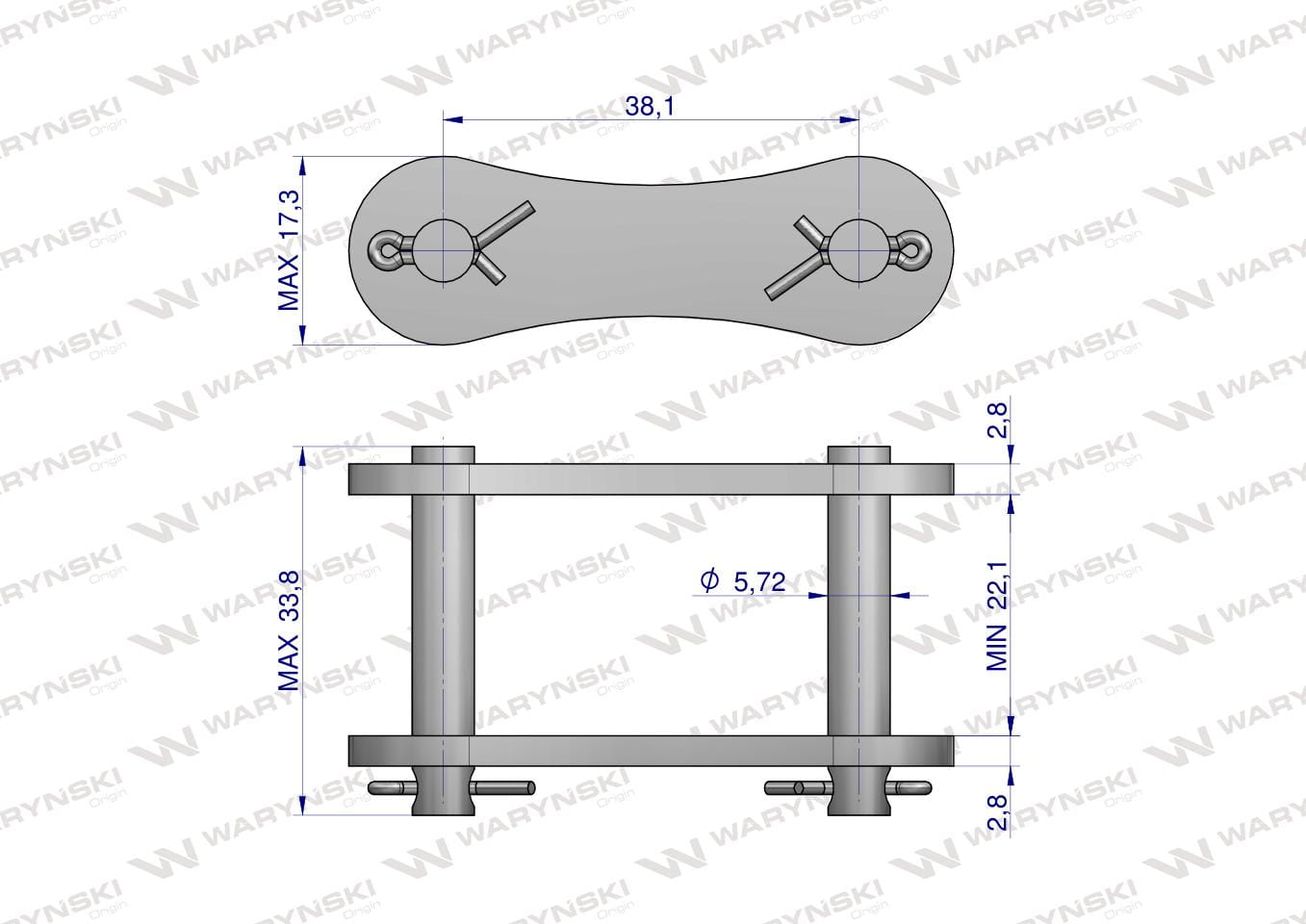 Maks. szerokość ogniwo łączące: 33,8 mm