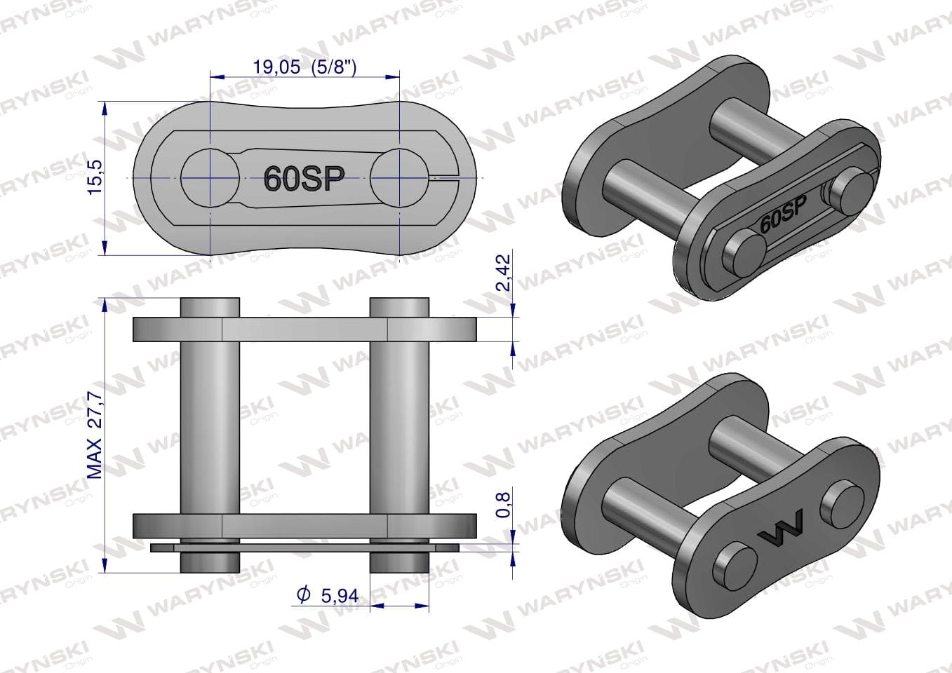 Zamek łańcucha Z60SP (R1 3/4) Waryński ( sprzedawane po 5 )