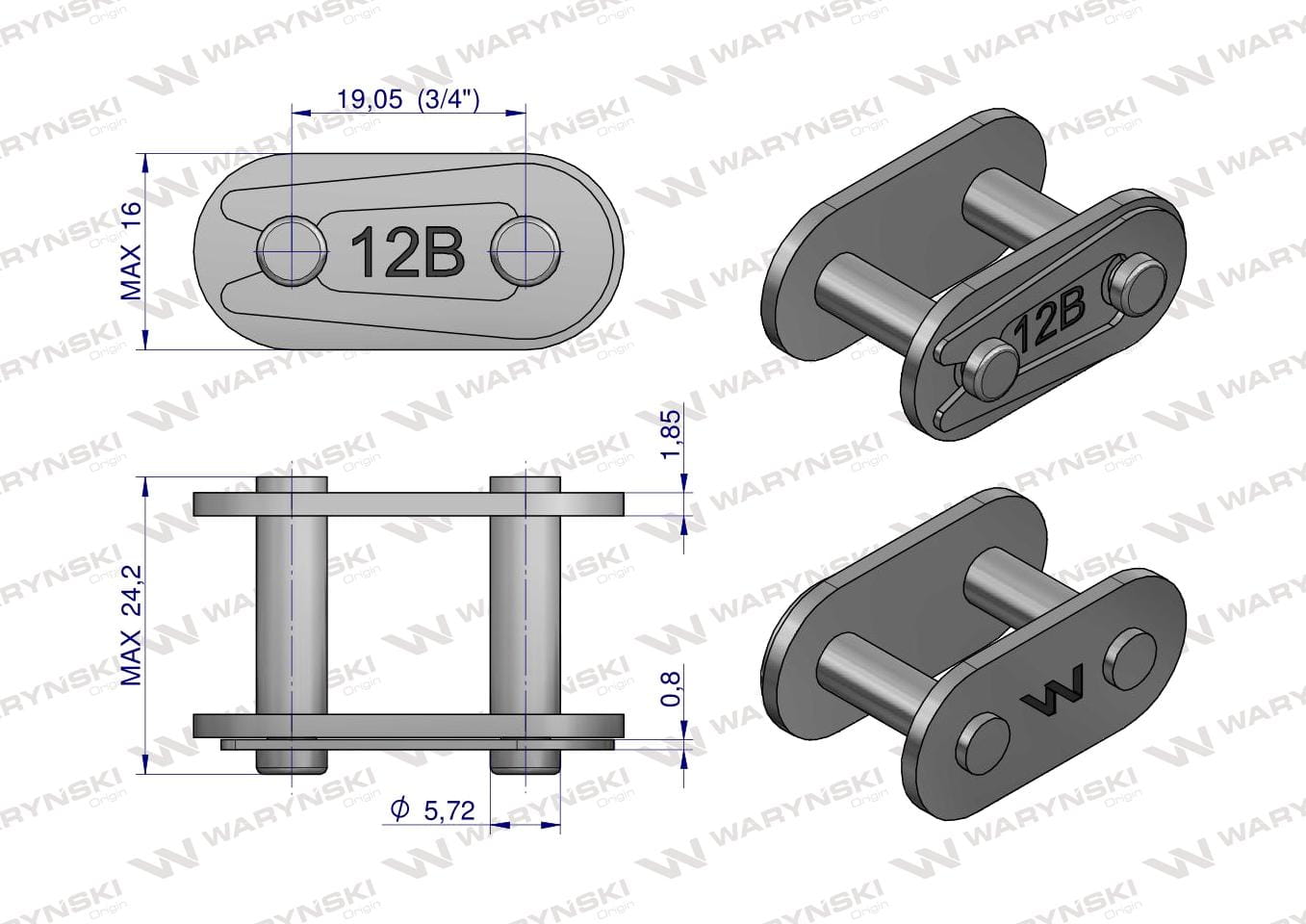 Zamek łańcucha prosta płytka Z12B-1 (R1 3/4) Waryński ( sprzedawane po 10 )