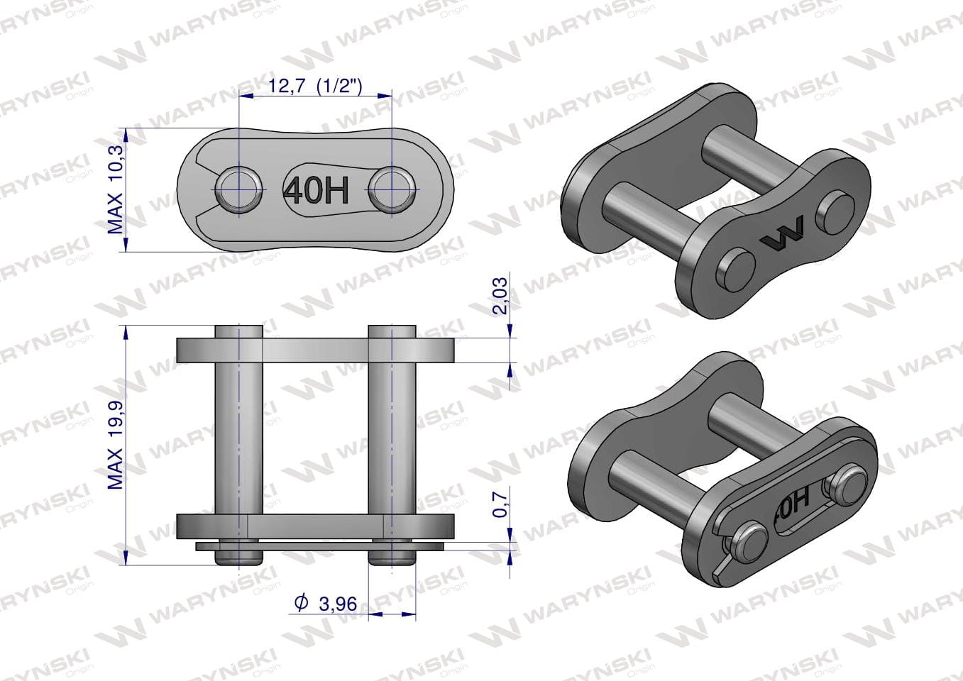Zamek łańcucha przemysłowego Z08AH-1 ANSI A 40H (R1 1/2) Waryński