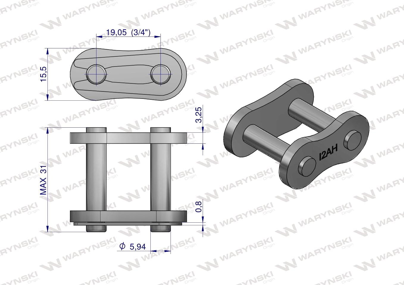 Zamek łańcucha przemysłowy Z12AH-1 ANSI A 60H (R1 3/4) Waryński ( sprzedawane po 10 )