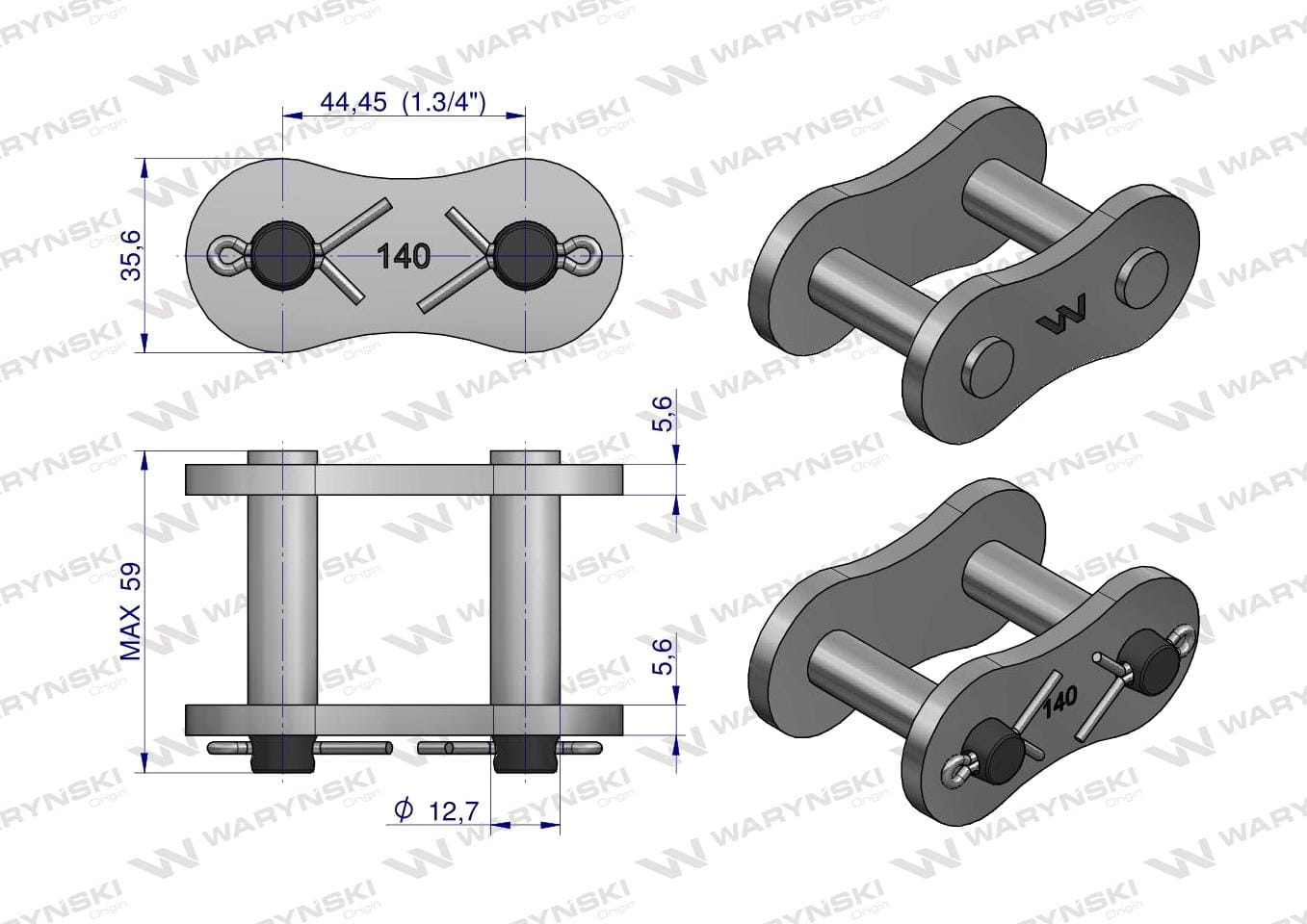 Zamek łańcucha wzmocnionego Z28A-1 ANSI A 140 (R1 1.3/4) Waryński