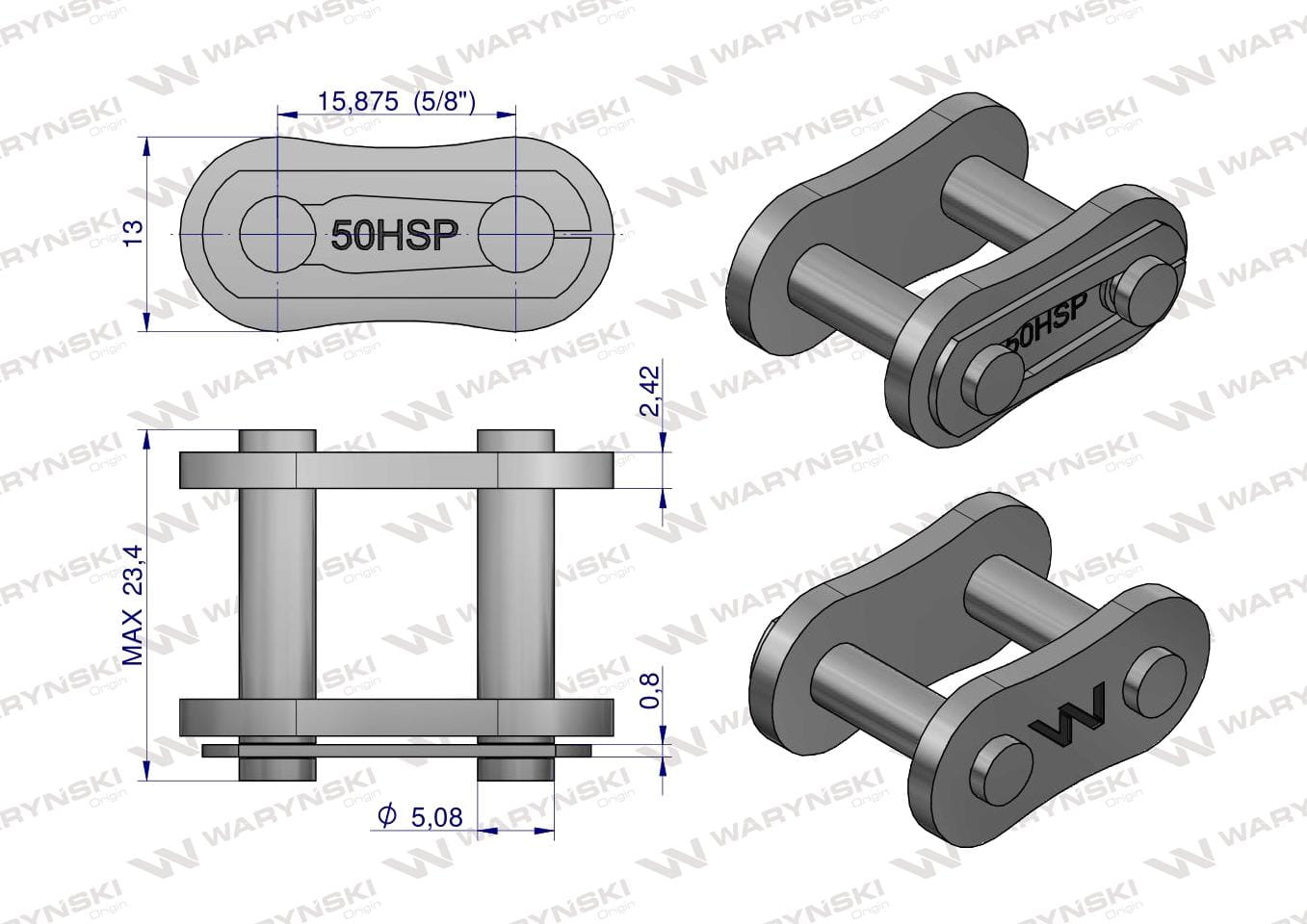 Zamek łańcucha wzmocnionego Z50SP (R1 5/8) Waryński ( sprzedawane po 5 )