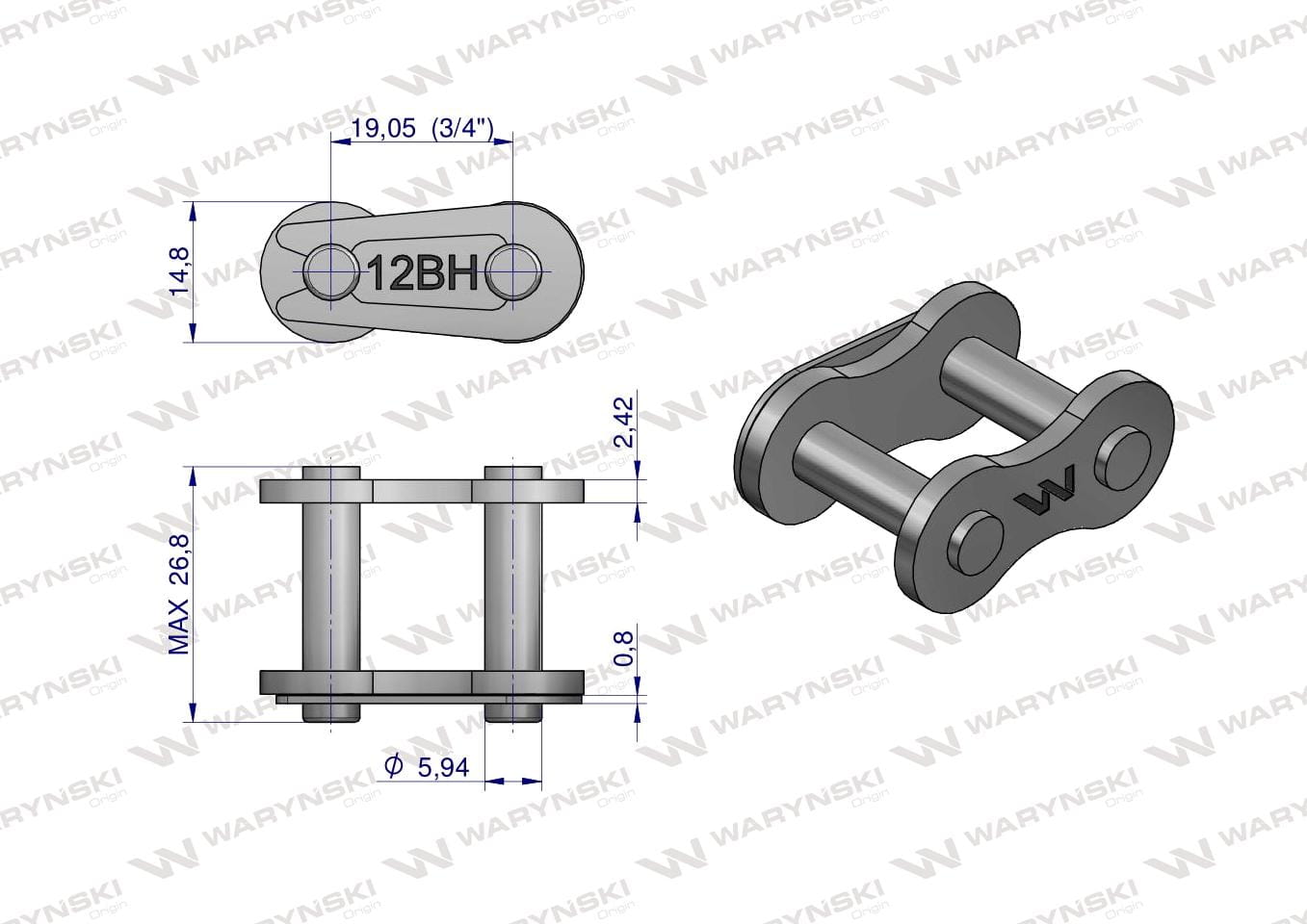Zamek łańcucha wzmocnionego przemysłowego Z12BH-1 (1 3/4) Waryński