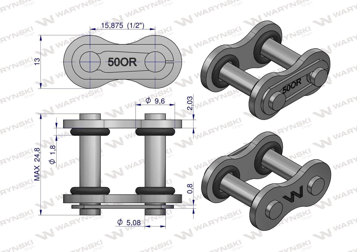 Zamek łańcucha z oringiem ANSI A 50 (R1 5/8) Waryński ( sprzedawane po 5 )