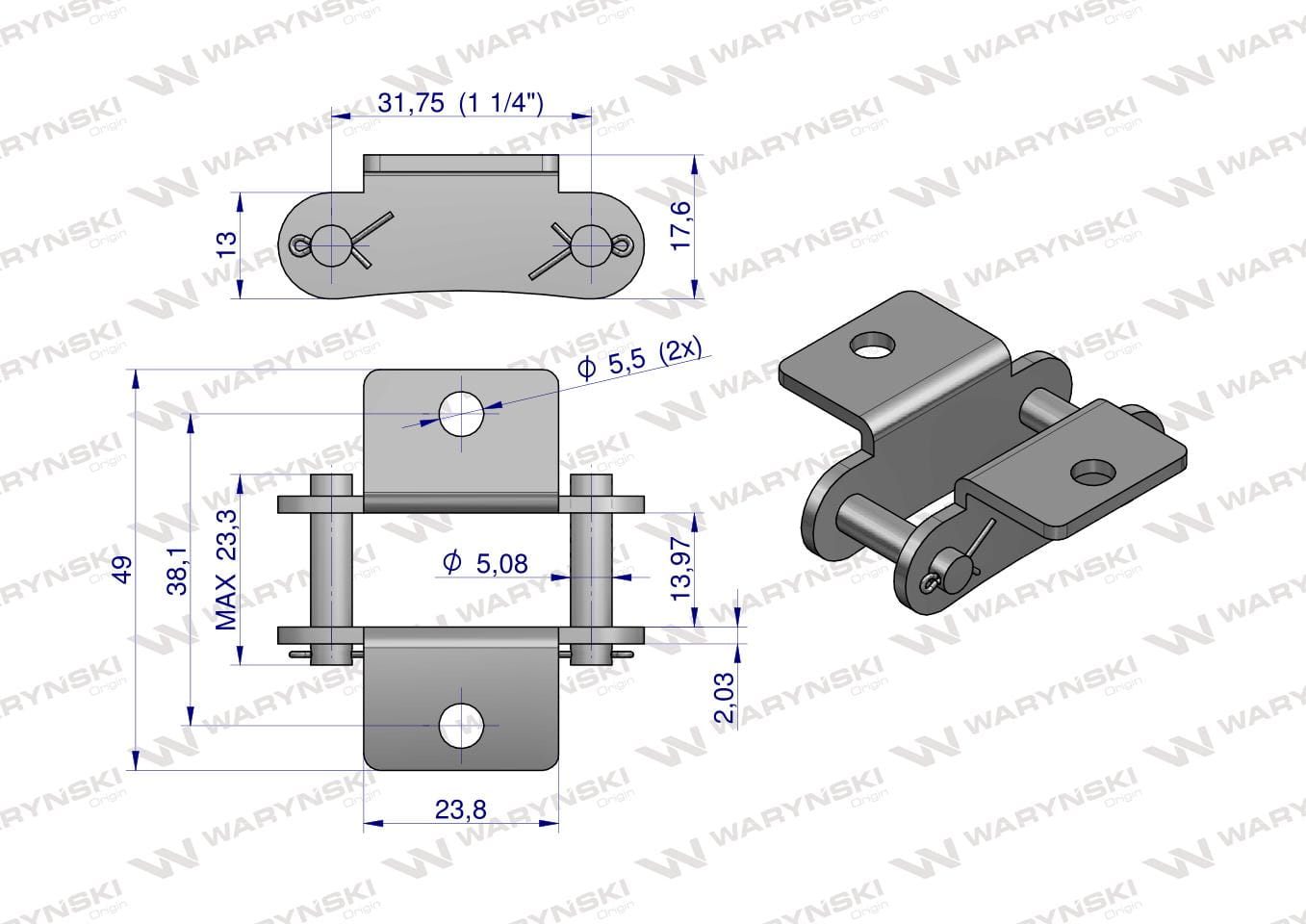 Zamek łańcucha z przyłączem obustronnym A2050K1 210AK1 Waryński