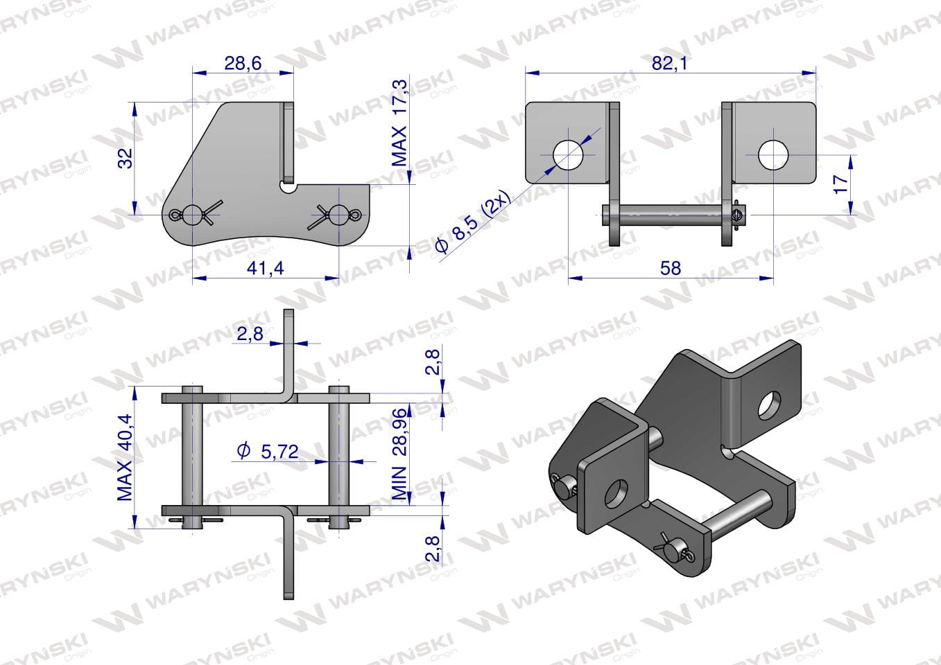 Zamek łańcucha z przyłączem obustronnym S45SD Waryński ( sprzedawane po 5 )