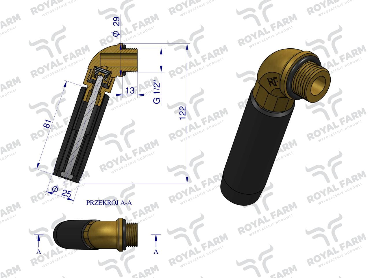 Zawór rurowy kompletny poidła RF-20909026 RF-20909018 ROYAL FARM