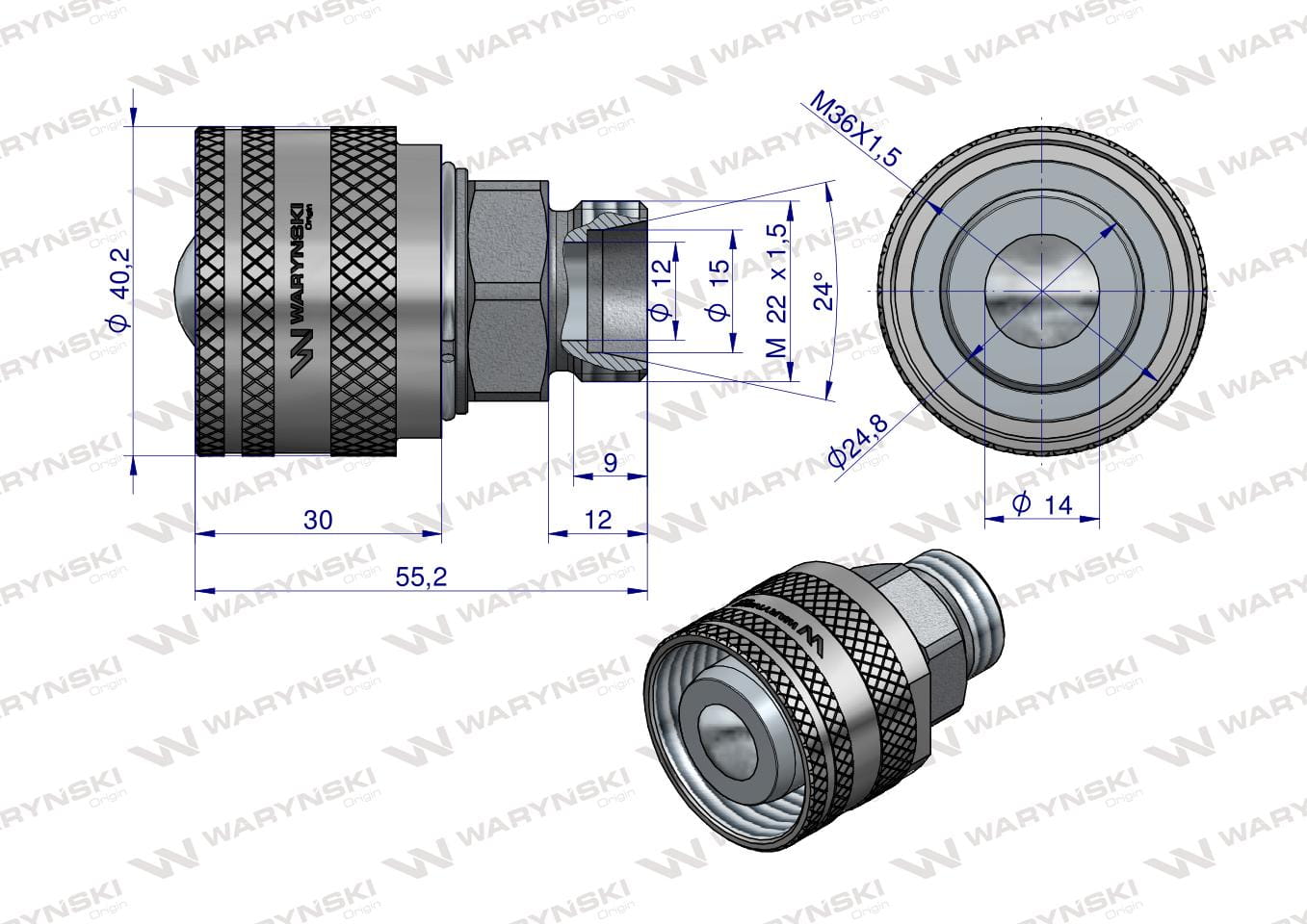 Zawór wtyczka M22x1,5 skręcane (50490030) Waryński