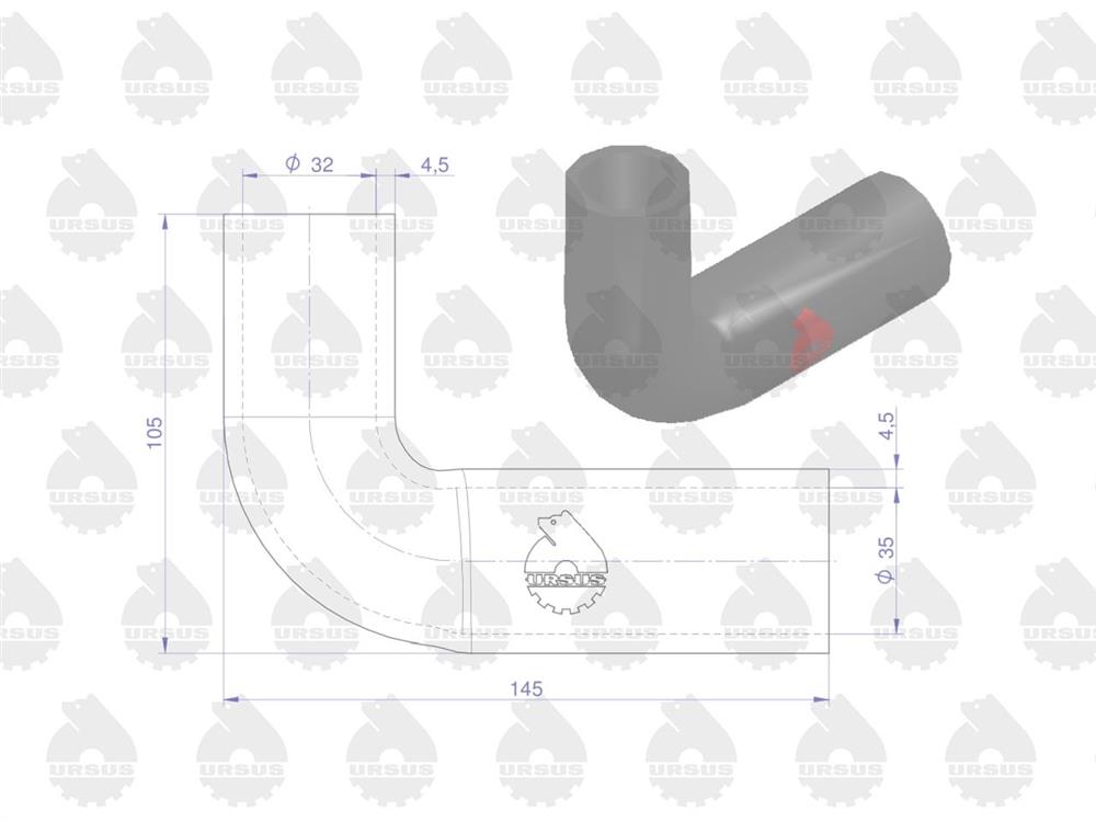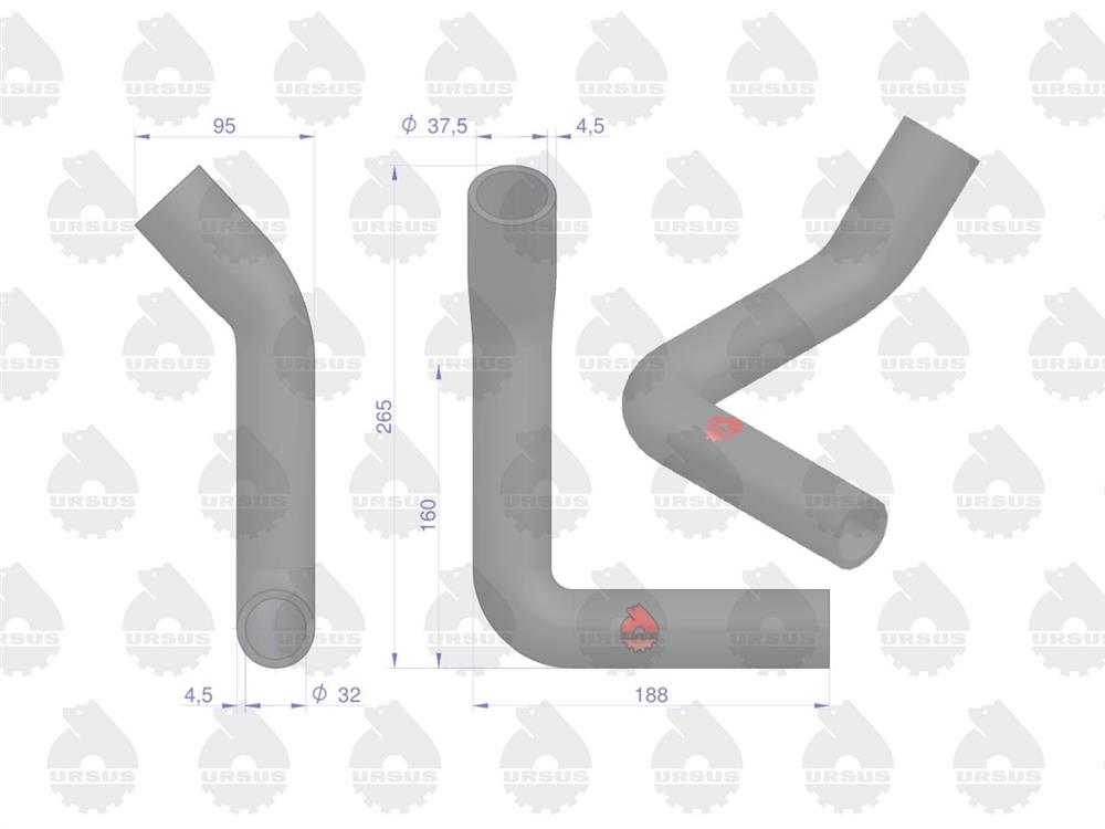 Przewód gumowy górny zbrojony płótnem C-360-3P (rura wody) ORYGINAŁ URSUS - 1 SZT
